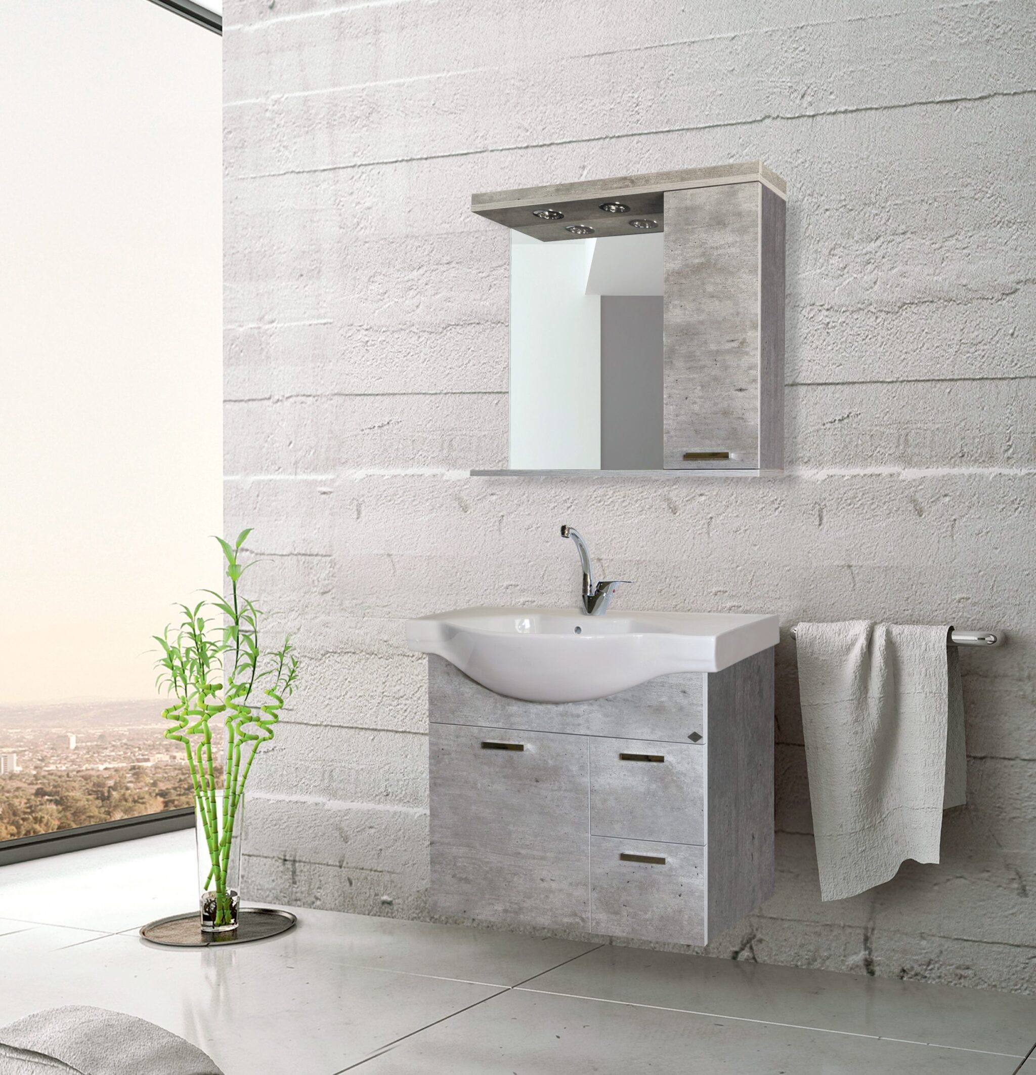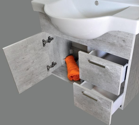 YΛΙΚΟ ΕΠΙΠΛΟΥ: Μελαμίνη ΧΡΩΜΑ: Νο 502 Κρεμαστό / 1 πόρτα + 2 συρτάρια Νιπτήρας πορσελάνη