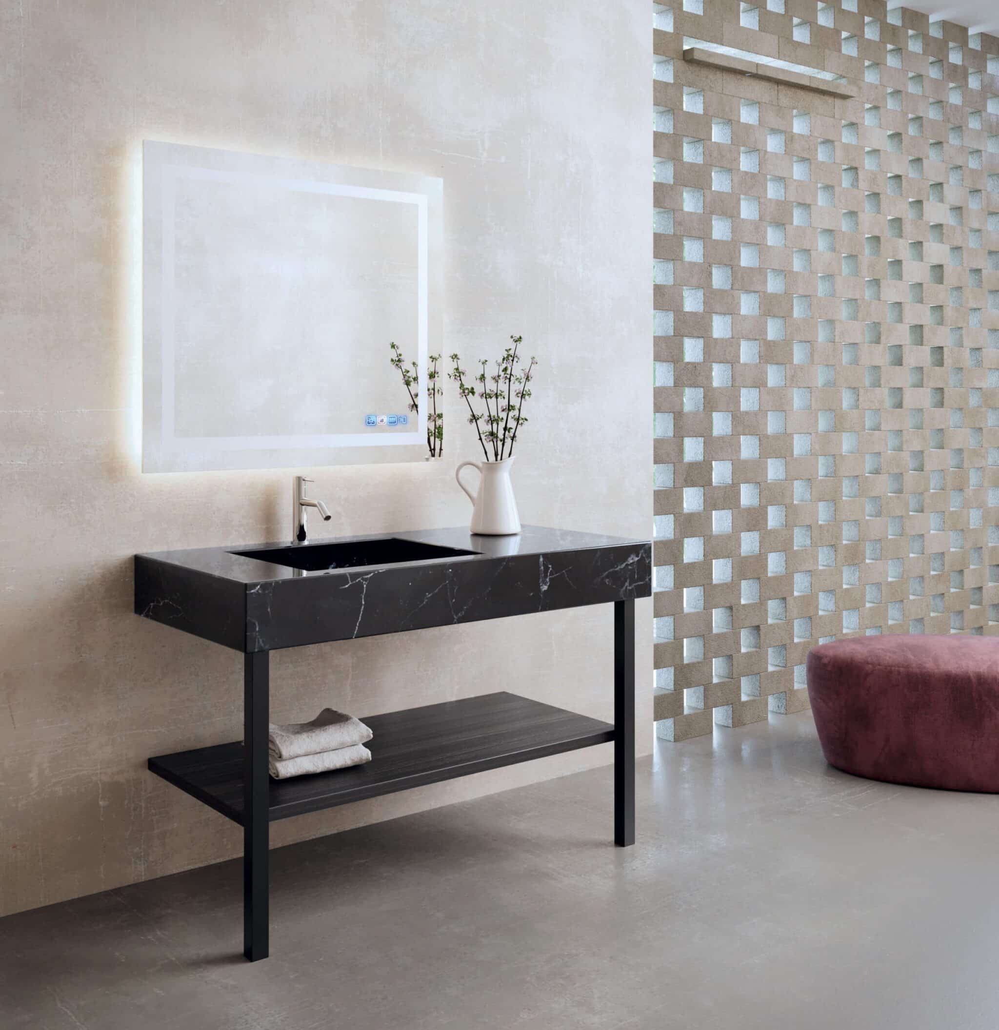 Nιπτήρας μαρμάρινος μονοκόματος σε 4 χρώματα. Καθρέπτης φωτιζόμενος με ειδικό φως για μακιγιάζ, ξεθάμπωμα όλο, και σύνδεση μέσω bluetouth με το κινητό για να παίζει μουσική. Πόδια σιδερένια. Τάβλα μασίφ.