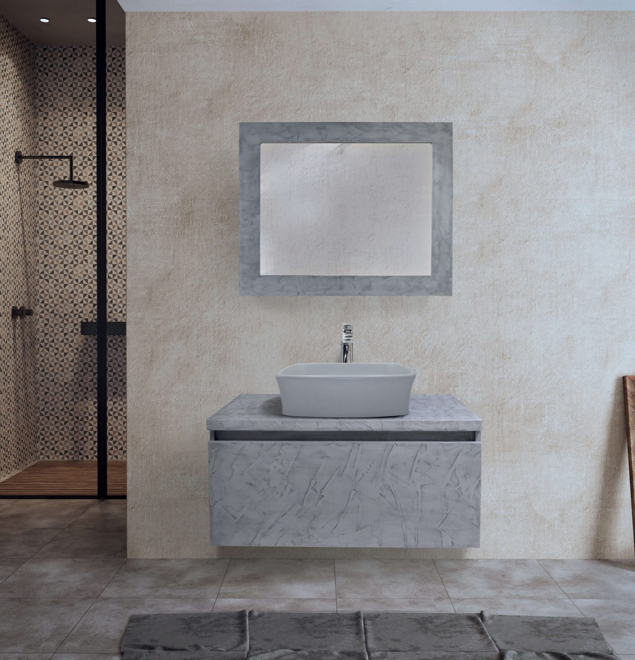YΛΙΚΟ ΕΠΙΠΛΟΥ: MDF πατητή τσιμεντοκονία ΧΡΩΜΑ: 7040 Μια πόρτα χούφτα – Aνάκλιση Καθρέπτης ξύλινη κορνίζα