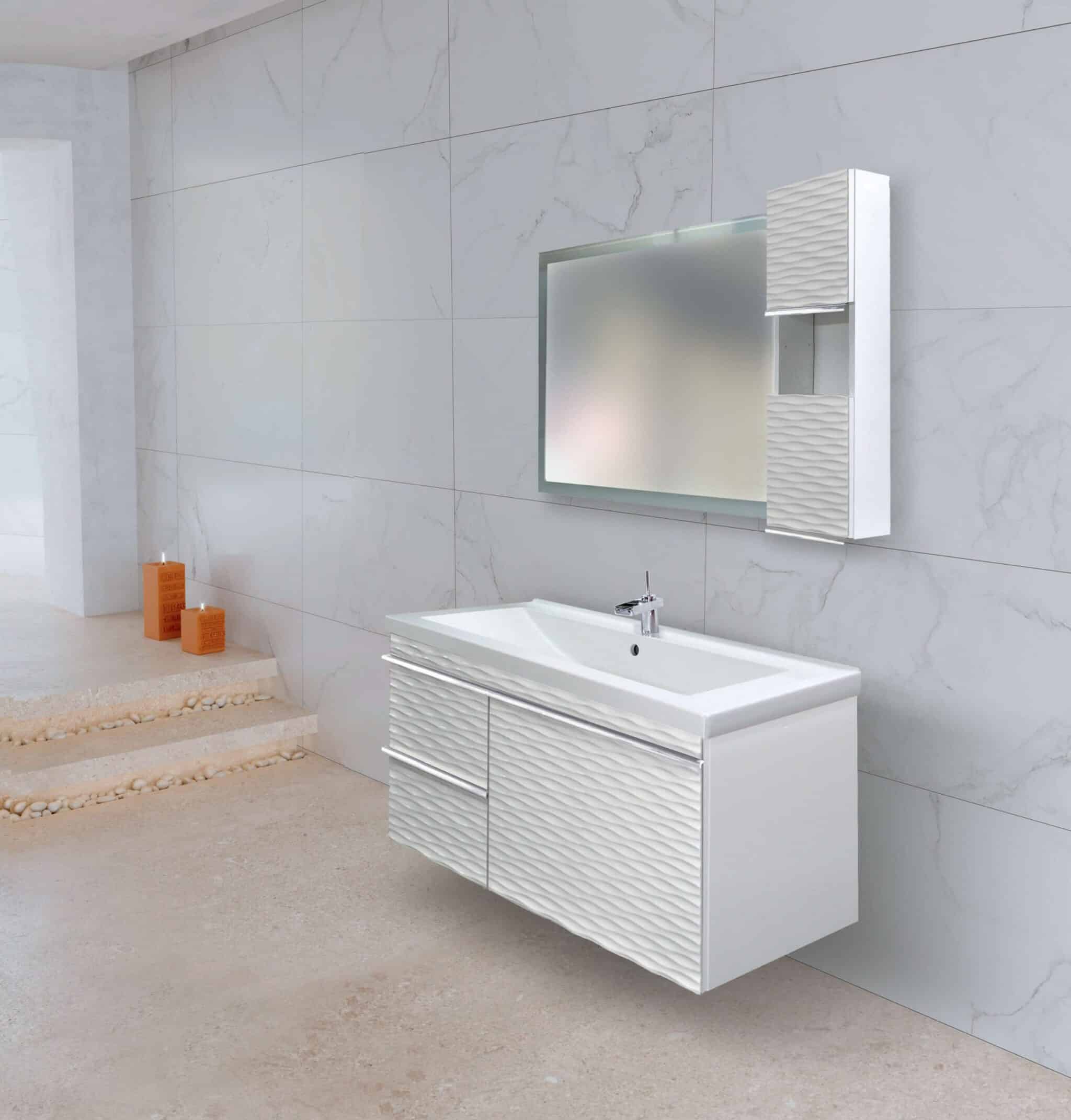 YΛΙΚΟ ΕΠΙΠΛΟΥ: MDF ΧΡΩΜΑ: 4 χρώματα Σαγρέ πόρτες Νιπτήρας πορσελάνη 3 Συρτάρια Μηχανισμοί με φρένο